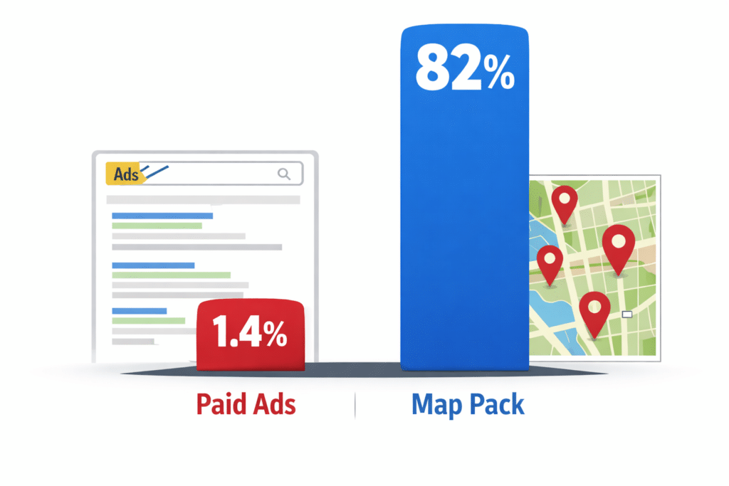 People scroll past ads to find the businesses Google actually recommends in the map pack. They trust organic results more than paid placement.