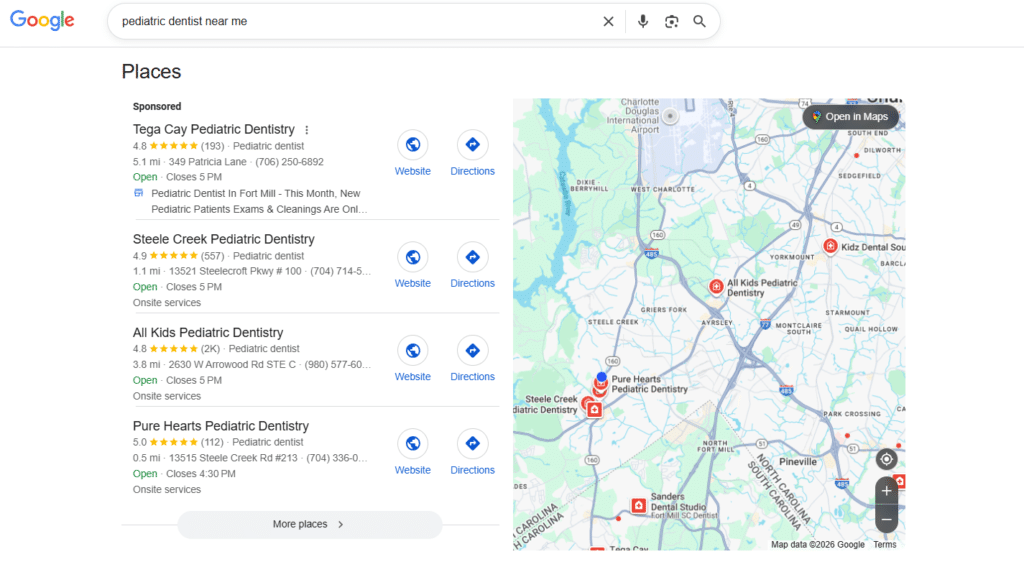 Someone searching “dentist near me” is ready to call. They’re looking now. They click one of the top 3, call or get directions, and that’s it.