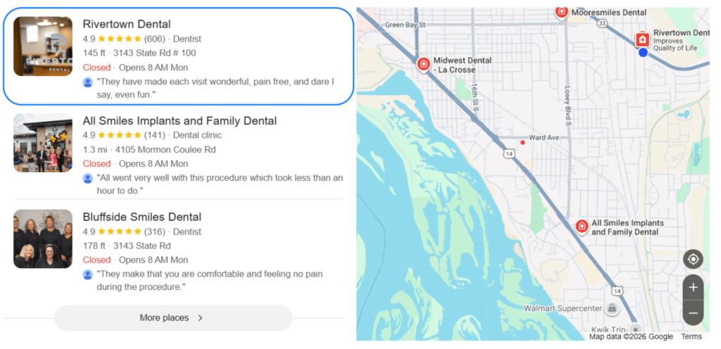 Google doesn’t care about your blog when someone searches “dentist near me” or “emergency plumber” or “pizza delivery.”